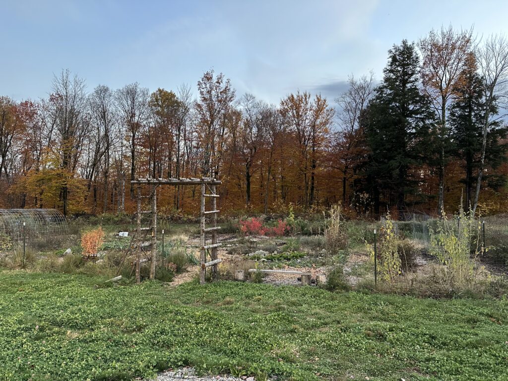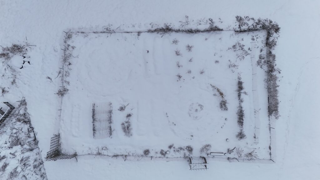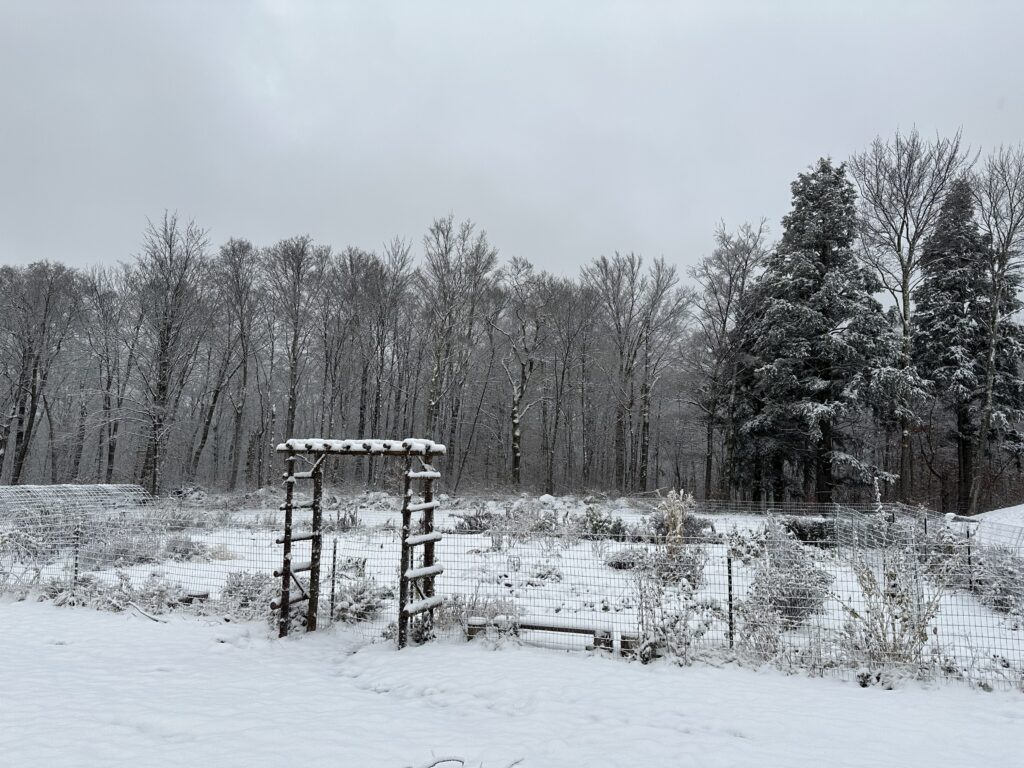 Winter is in full swing here and we have had snow on the ground since late October. Before all of the snow came we worked on putting the garden to bed. We refer to this time as putting the gardens to bed because we clean up and then cover the soil in the beds. We do not remove all of the spent plant material, some is left for various pollinators and insects to overwinter in and some is left for the birds to eat. Once the beds are cleaned up and ready we cover them with compost and used shavings from the chicken coop.